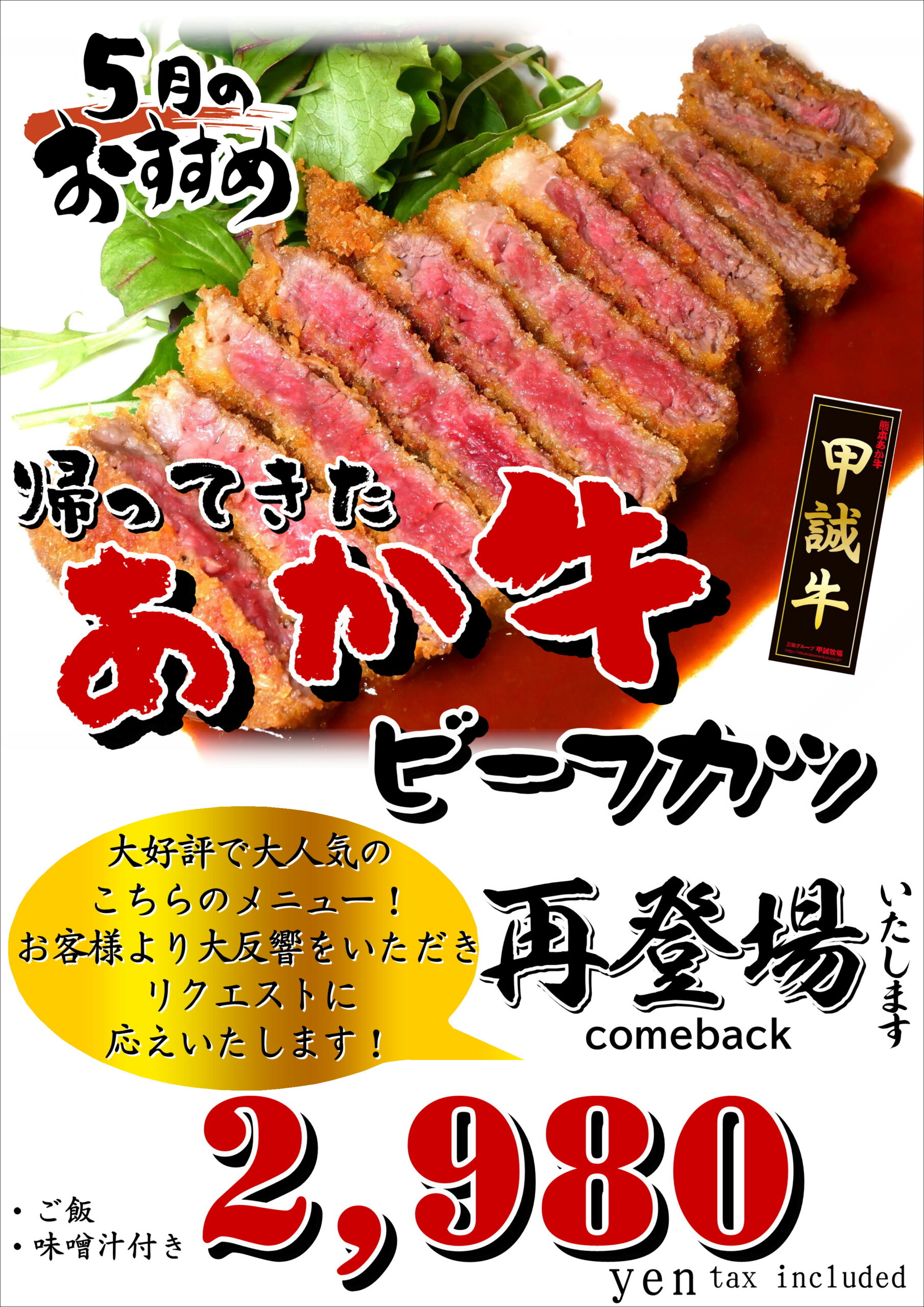 5月はあか牛レストランよかよか道の駅大津でお待ちいたしております~